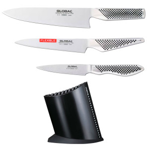 Et knivsett med blokk er den komplette løsningen. Global gir deg 3 essensielle kniver og en elegant knivblokk med plass til 9 – perfekt for å bygge samlingen.