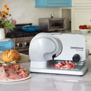 Chef’sChoice 615A er en allsidig skjæremaskin med kraftig motor og justerbar tykkelseskontroll. Den er perfekt for både tykke skiver brød og tynne skiver skinke.